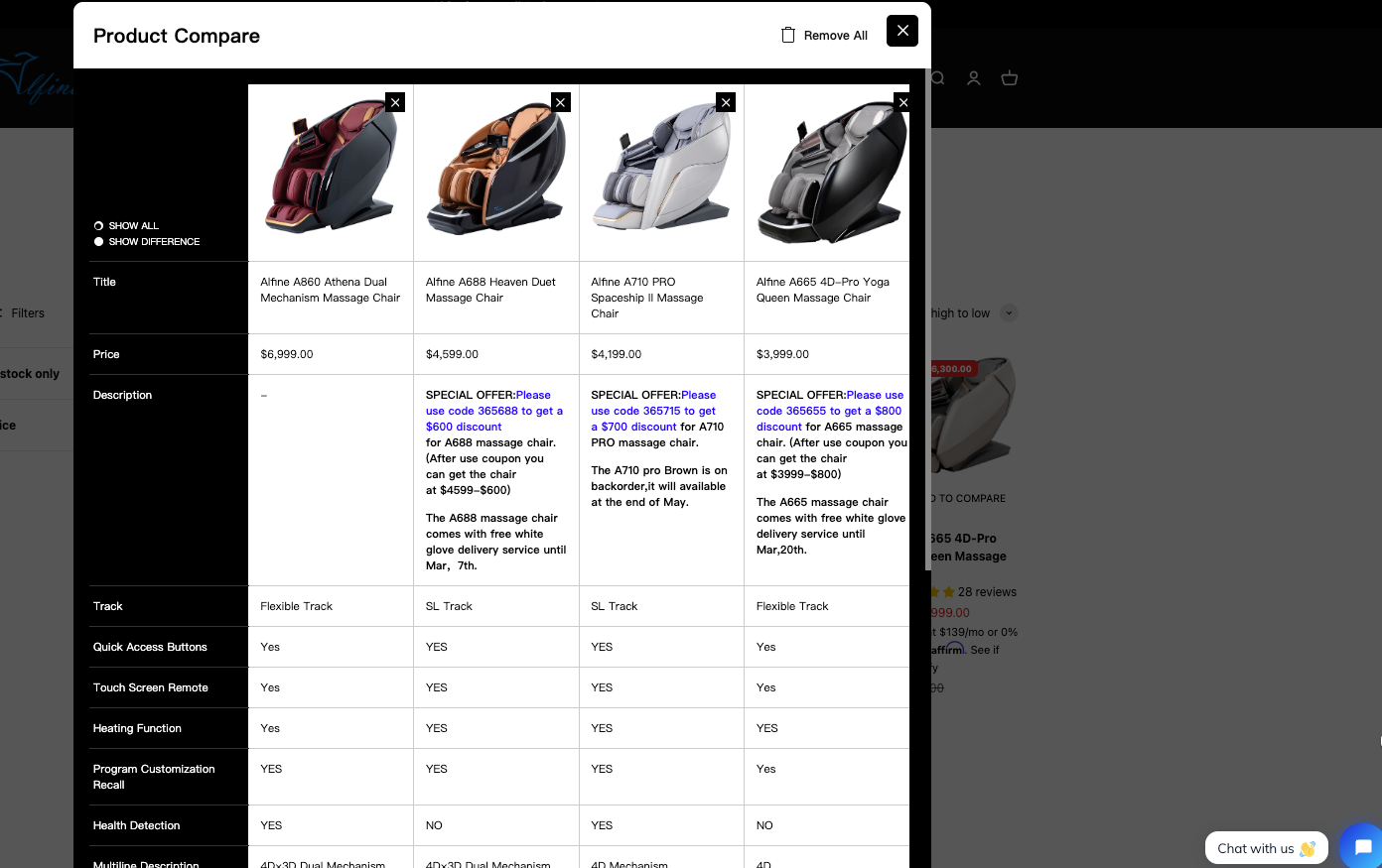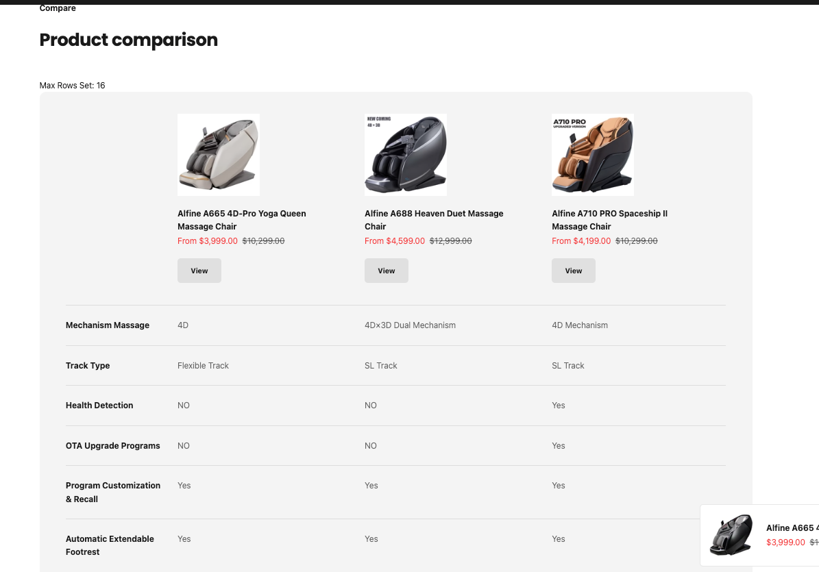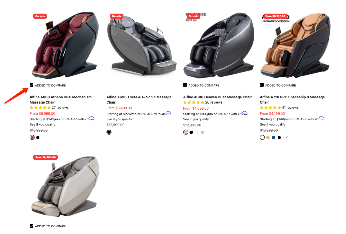 Our Massage Chair Comparison feature helps you easily find the perfect chair by viewing key features side by side. Follow these simple steps to use this tool: