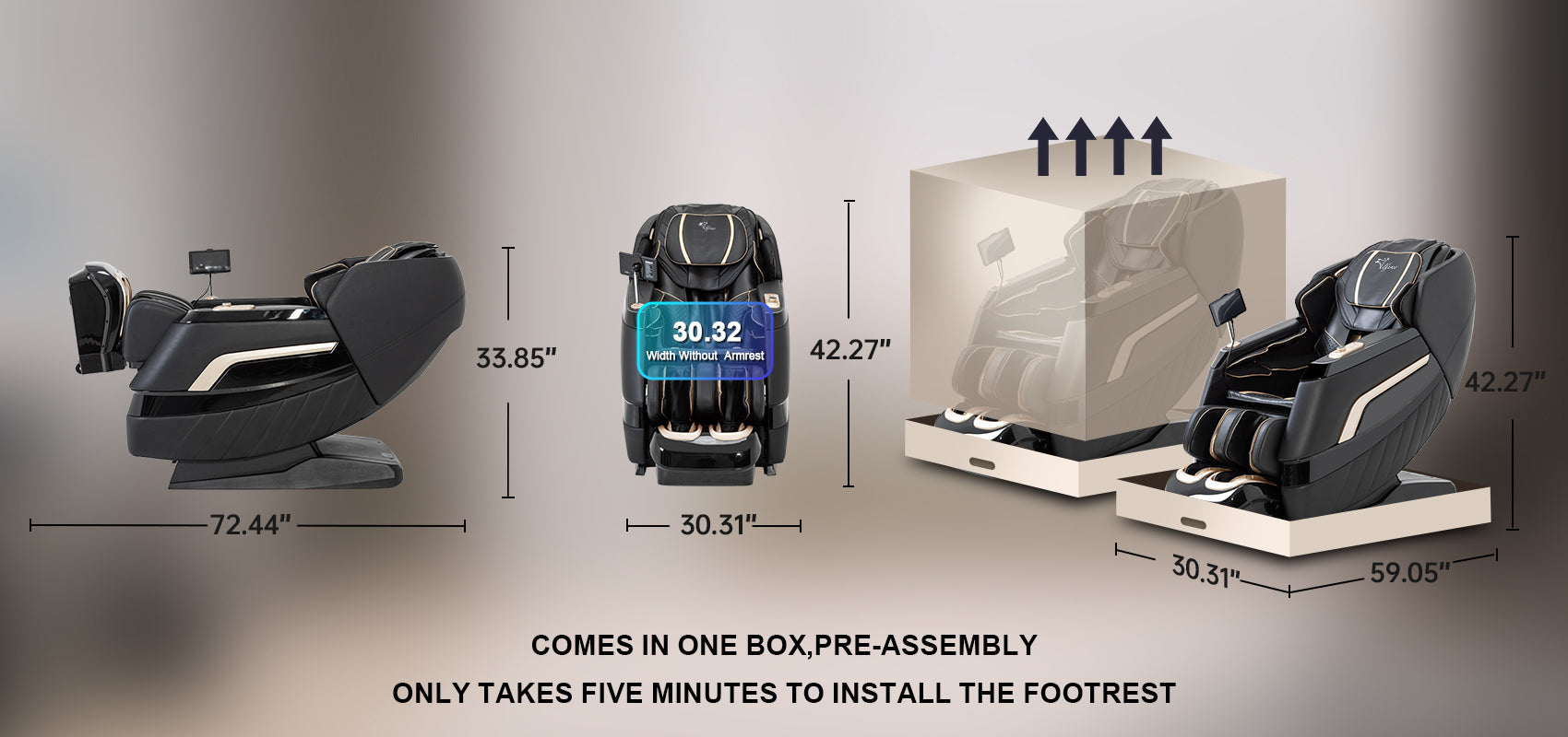 The A66 comes 90% pre-assembled for your convenience — just attach the footrest in a few minutes, and you're ready to relax. Built-in wheels on the base make it easy to move the chair around your space when needed.
