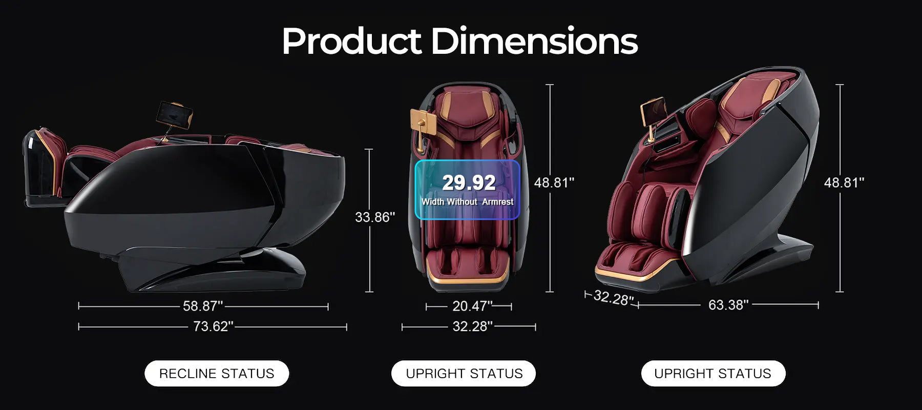 Product Dimension Reclined (in): 73.62(L) x 32.28(W) x 33.86(H)